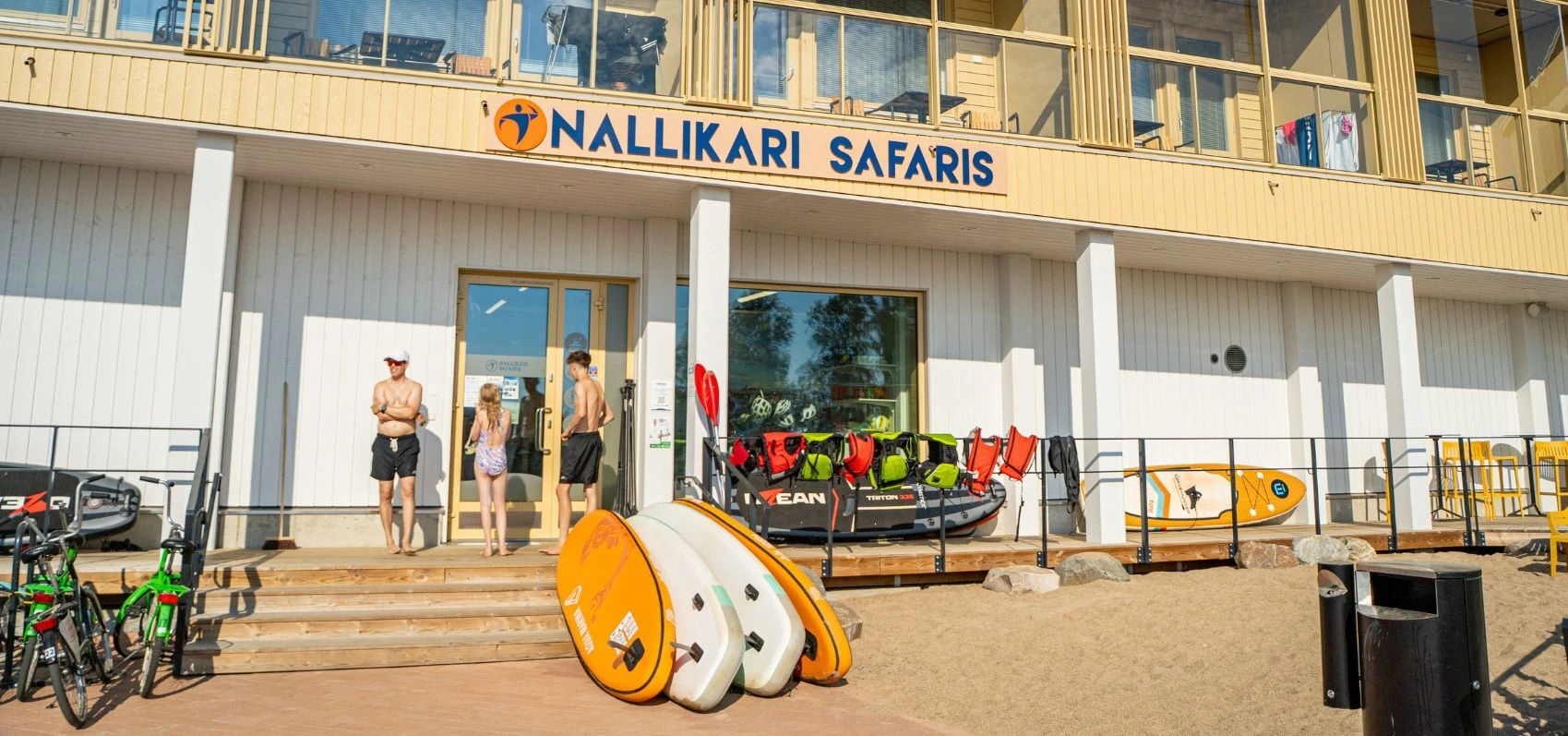 During the summer season (June 1st–August 31st), we are open daily. From autumn to spring and winter seasons, we serve by request. Our rental shop is located in perhaps the best spot in Oulu – right in the heart of coastal Oulu, just in front of Nallikari Beach, on the ground floor of the Aalto Hotel building, at the landing point of the Oulujoki delta paddling route.