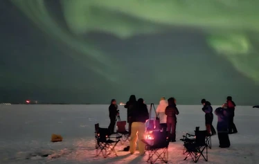 Price includes: Thermal clothing (overalls, gloves, beanie, and boots), guidance by trained Aurora guides, stove-heated tent warmed with firewood, snacks, and hot beverages.