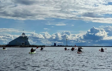 This guided evening experience is designed for anyone who wants to witness this northern phenomenon, midnight sun, from the water. Before departure, your guide provides clear kayaking and safety instructions to ensure everyone feels comfortable and confident. We paddle through the safe and scenic waterways of Oulu, where cultural landmarks meet coastal nature, all illuminated by the endless summer light.