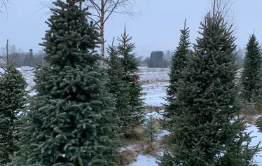 Visit a local family-run farm surrounded by snowy Christmas trees