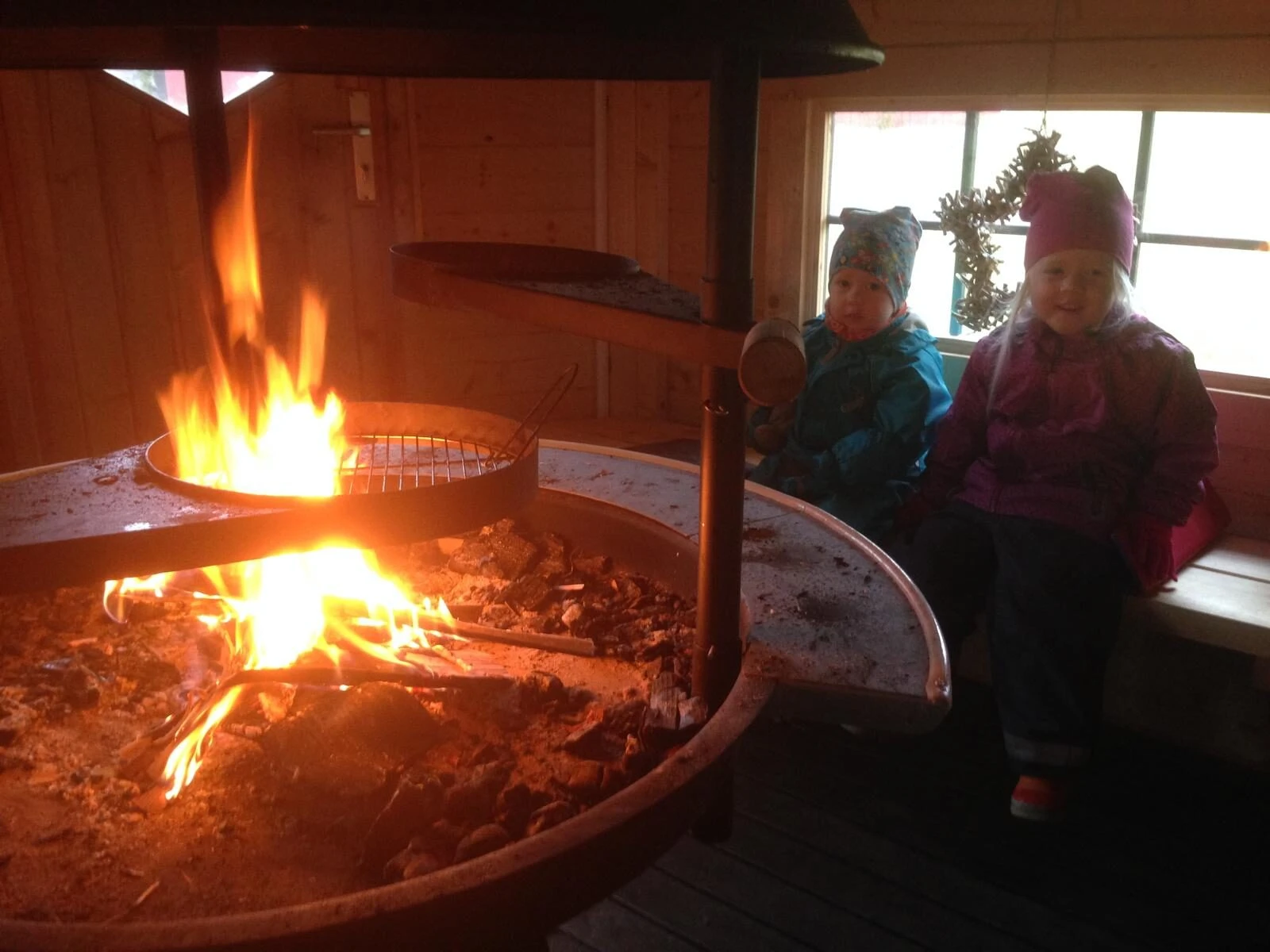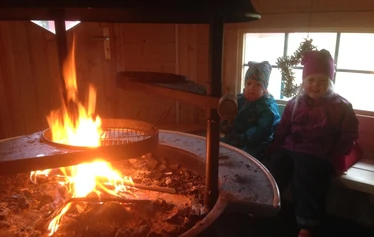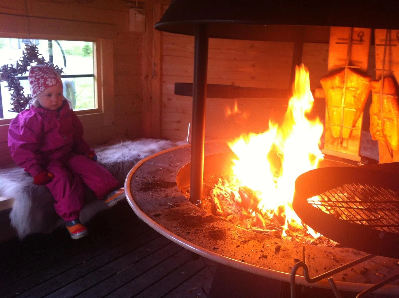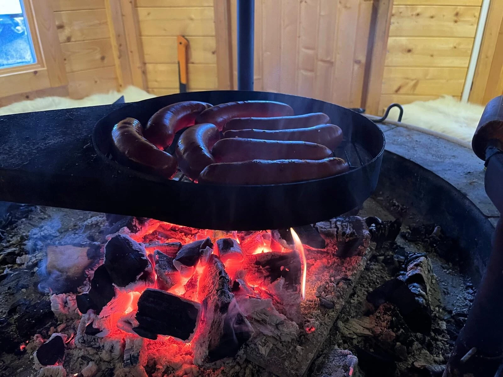Enjoy warm drinks and pastries by an open fire inside a cozy wooden hut (kota)